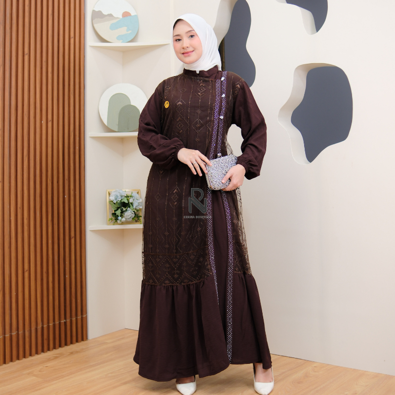 DP 0 Naura Dress Brukat Premium Gamis Kondangan Wanita Model Terbaru Elegan Terbaru Kekinian
