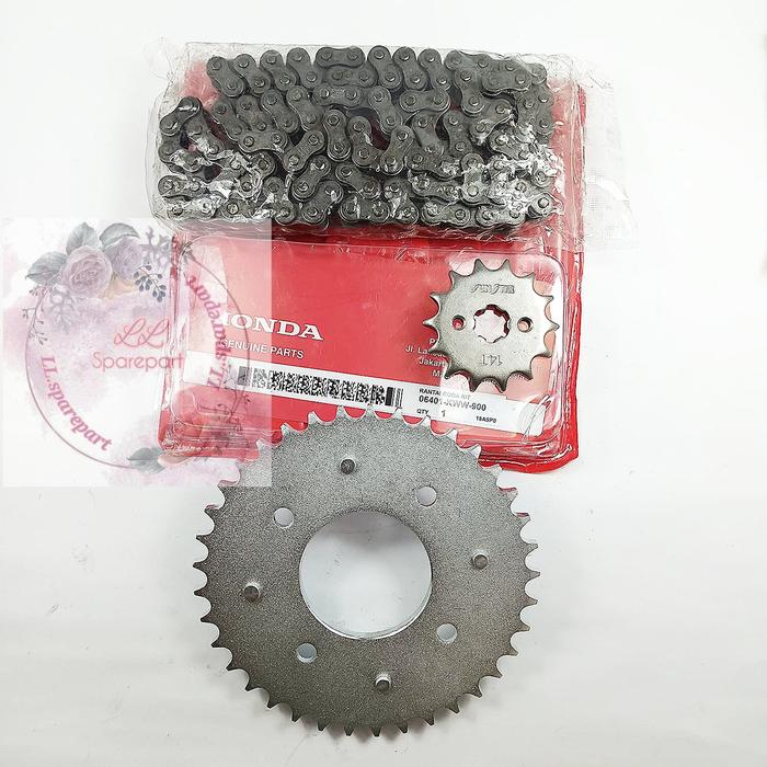 GEAR SET PLUS RANTAI DRIVE CHAIN KIT HONDA KWW / KWB KUALITAS ASLI ORIGINAL PRESISI PAS TIDAK BUNYI BAHAN TEBAL DAN AWET