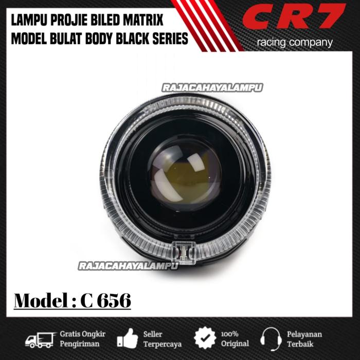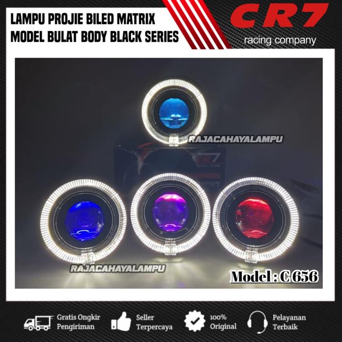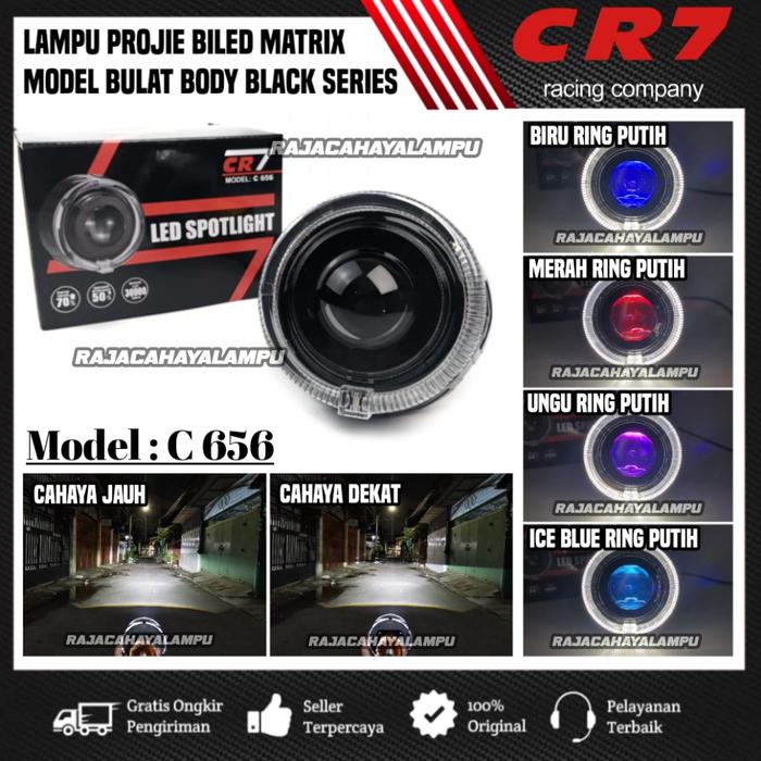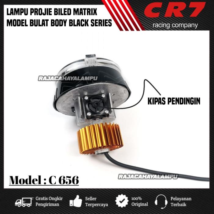 Lampu Depan Projie Biled Matrix Cr7 C656 Model Bulat Plus Kipas Pendingin Body Black Series Universal - Merah Ring Putih