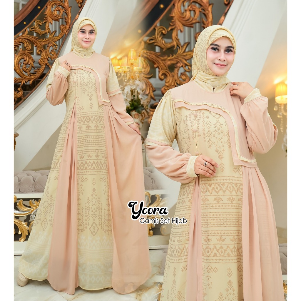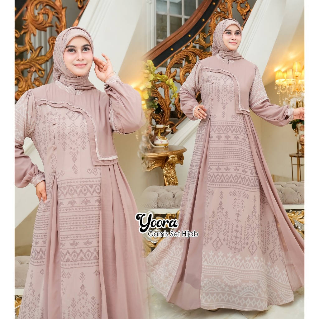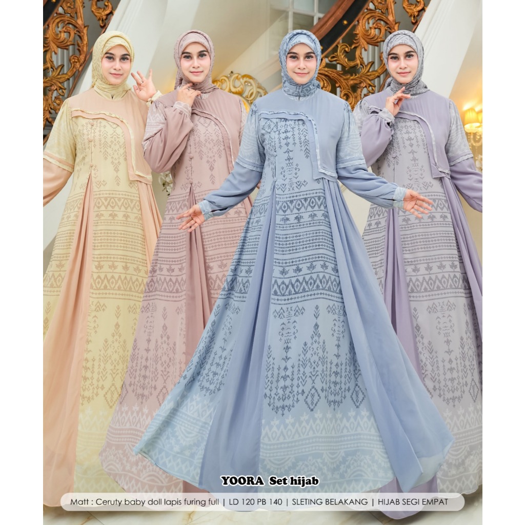 YOORA Baju Gamis Set Hijab Segi empat Ukuran Jumbo Ceruty Etnik Termurah