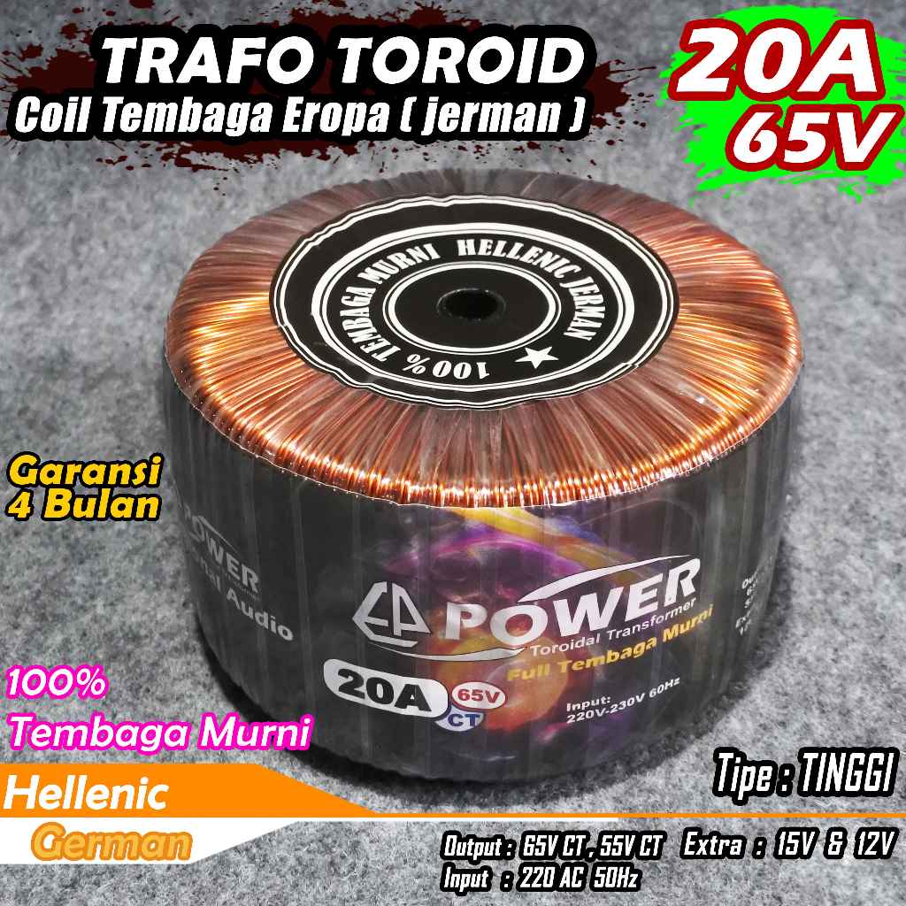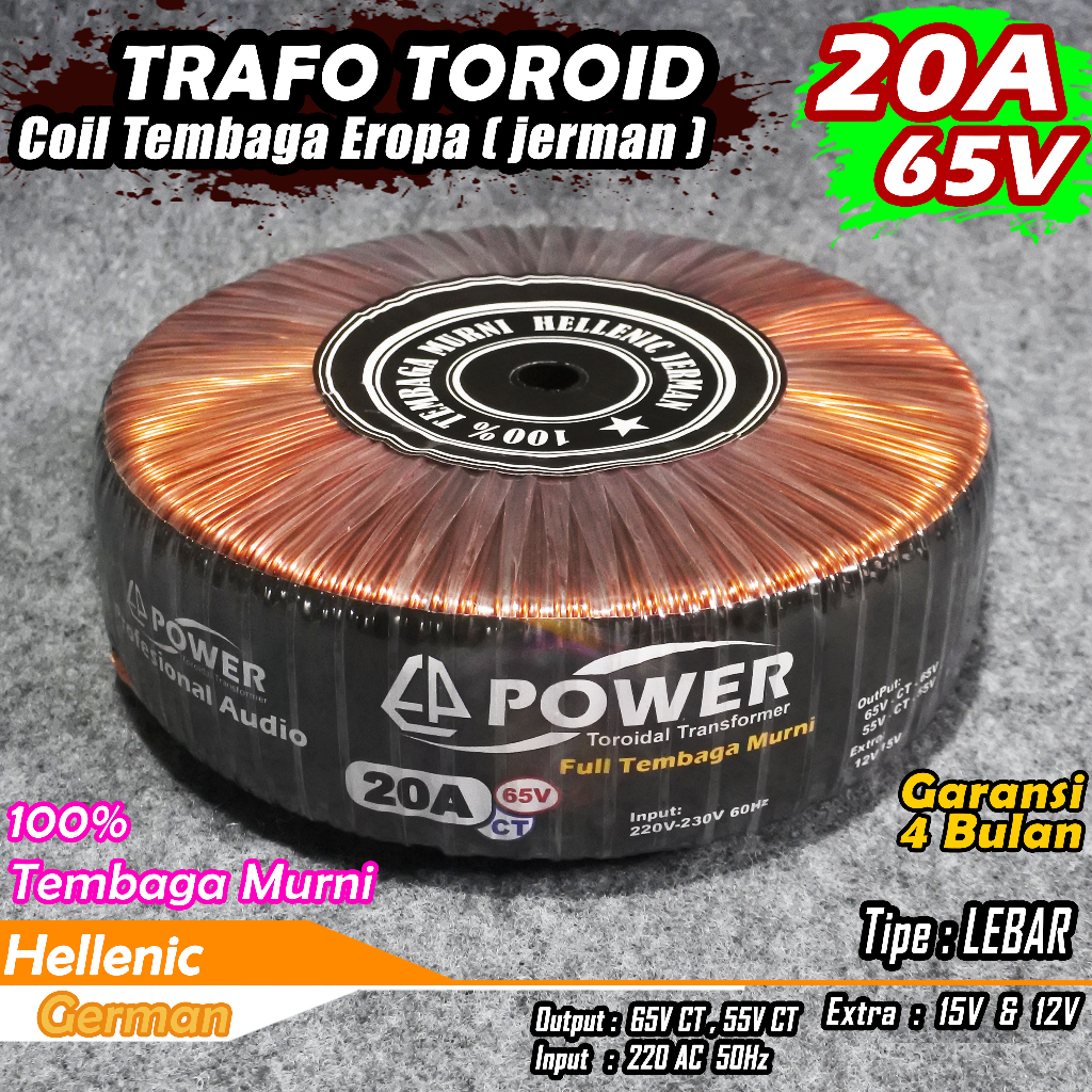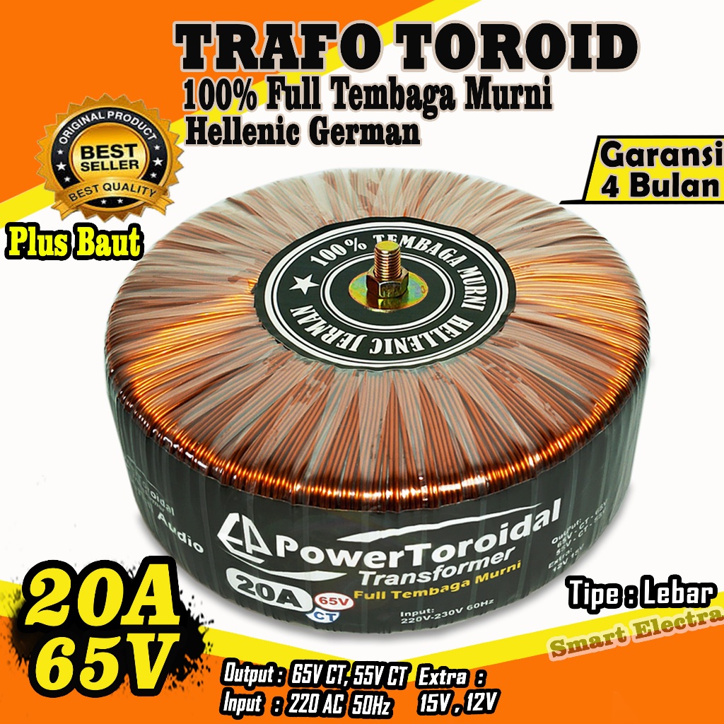 Trafo Toroid 20A 65V CT - 55V CT 20A MURNI Full Tembaga Murni Hellenic jerman