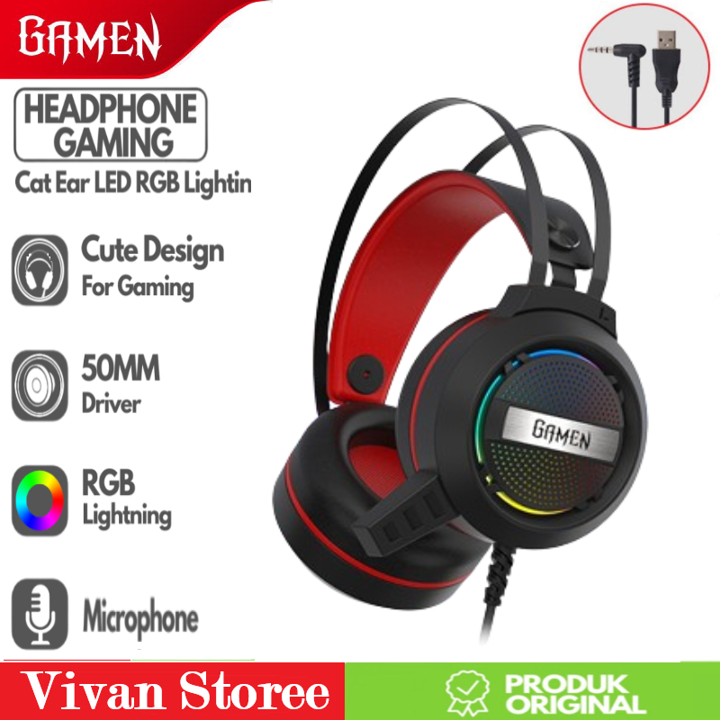 GAMEN HEADSET GAMING GH110 HEADPHONE RBG WIRED CONNECTION E-SPORTS NOISE REDUCTION CONTROL DESIGN HEADSET NO LATENCY GARANSI ORIGINAL RESMI