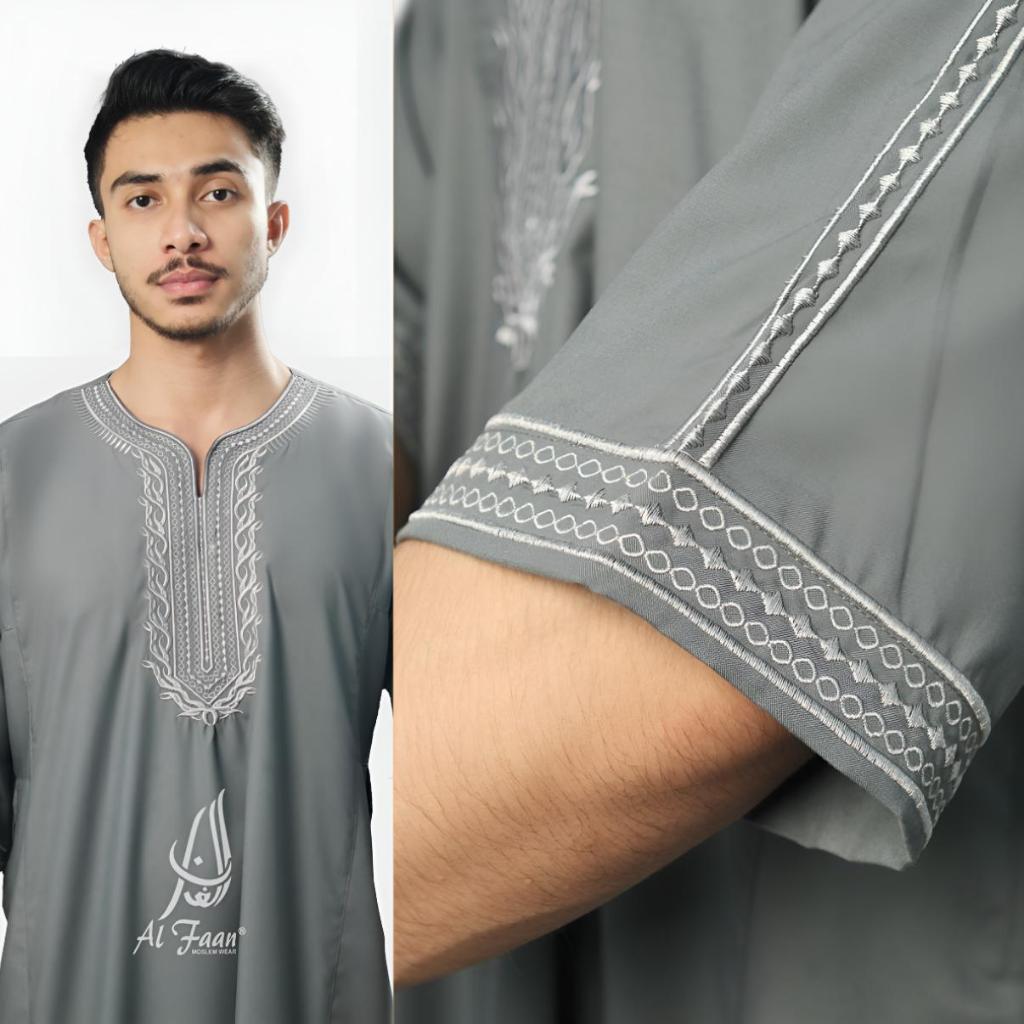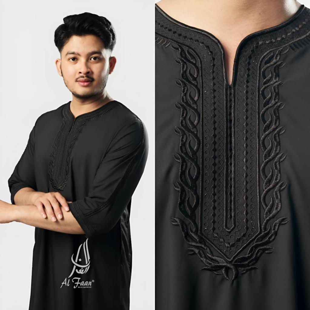 AL FAAN Jubah Pria Muslim Gamis Pria Jubah Pria Muslim Jubah Gamis alfaan bordir Lengan pendek Alzan Motif Panjang Polye