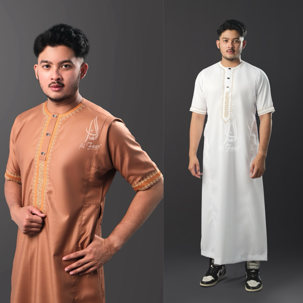 Jubah Bordir slimfit ALFATIH lengan pendek jubah pria gamis pria muslim jubah maroco jubbah thobe busana muslim kurta ju