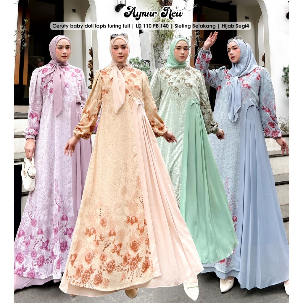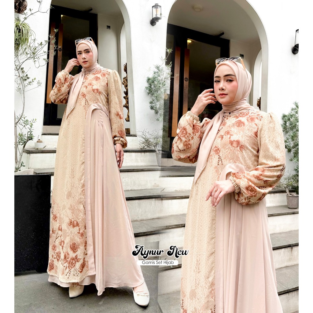 ILYA FS- AYNUR NEW Gamis Muslim Wanita Set Hijab Model Terbaru Best Seller Kondangan