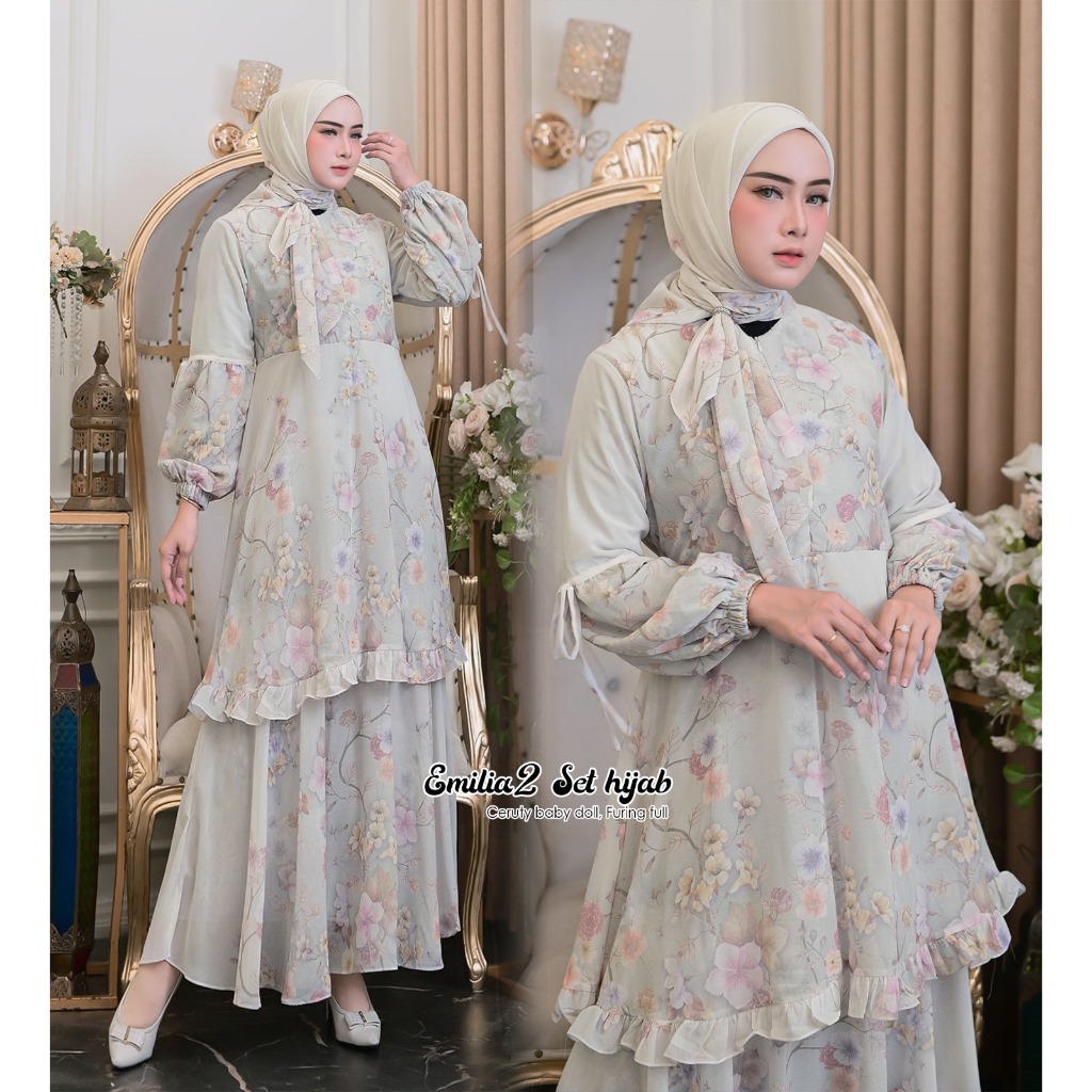 ILYA FS- EMILIA 3 Gamis Set Hijab Model Kekinian Gamis Kondangan Terbaru Best Seller