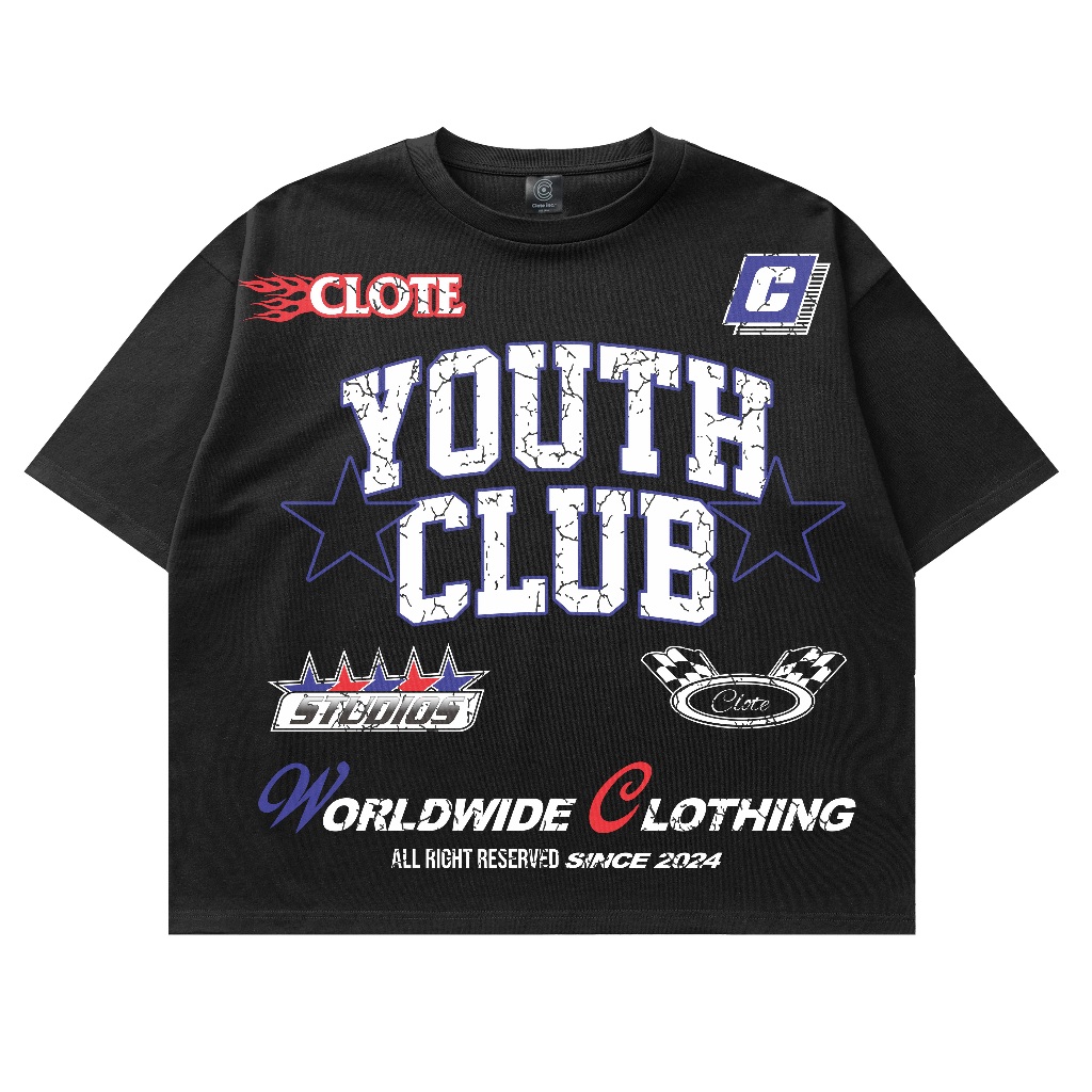Boxy Crop Fit Oversized Cotton 20s Clote Yout Club Kaos Premium Lengan Pendek Bahan Tebal Nyaman dan Adem
