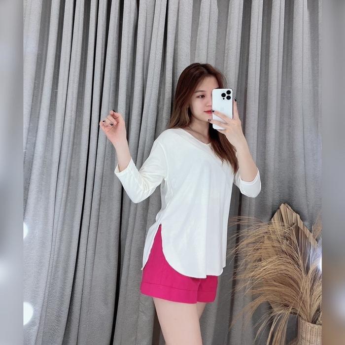 Ladies Collection | Kaos Oversize Lengan 7/8 | Kaos Jumbo Lengan 7/8 | Kaos Wanita Oversize - Hitam, Allsize