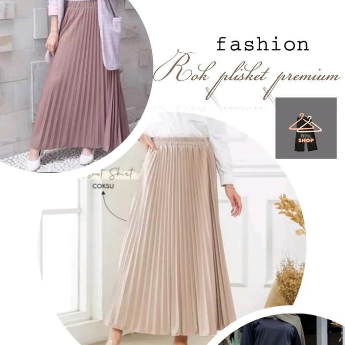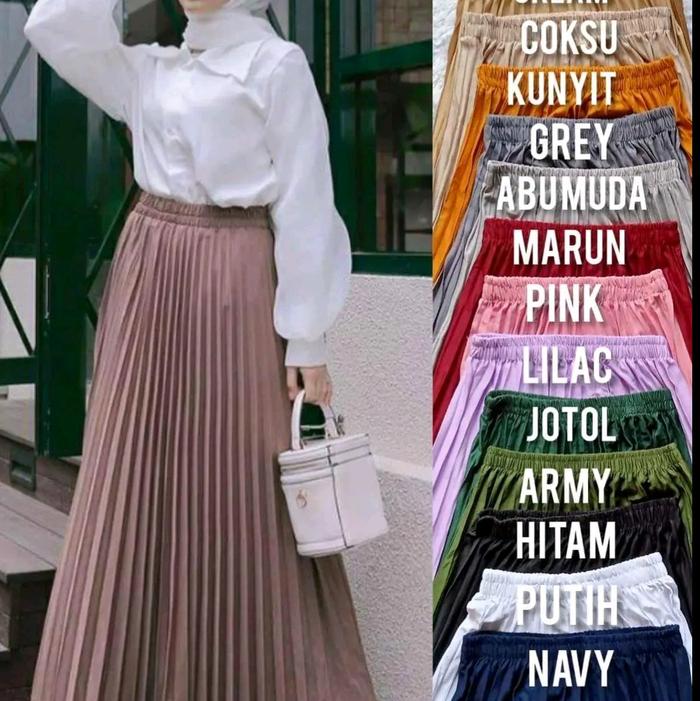 Rok Plisket Wanita Viral / Rok Plisket Wanita /Rok Wanita Viral / Rok Plisket Panjang / Rok Wanita Kekinian Fit Karet M
