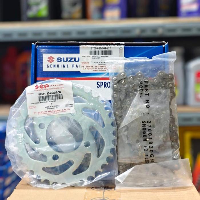 GEARSET GIRSET CHAIN KIT KOMPLIT RANTAI SHOGUN 125 OLD FD SP 100 PERSEN ASLI SGP