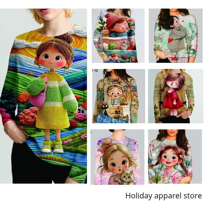 Holiday Apparel Store Kaos Oversize Aop Tangan 3/4 All Of Print Motif Gadis Kecil Bocil Series 01 Kain Katun Polyester T