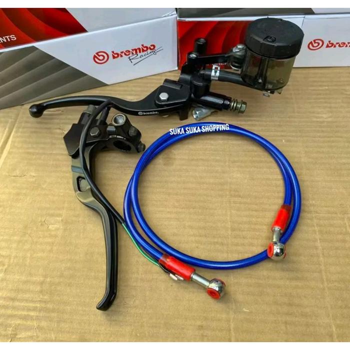 Handle Master Rem Kiri Plus Kanan Tabung Smoke Plus Selang Rem Depan 95Cm Universal Motor - Biru
