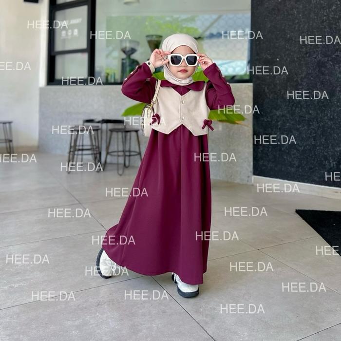 Gamis Ganisha Knit Anak 3-12 Tahun Baju Muslim Panjang Syari Setelan Cewek Bahan Vania Knit Adem Melar Size S-Xxl - Brok