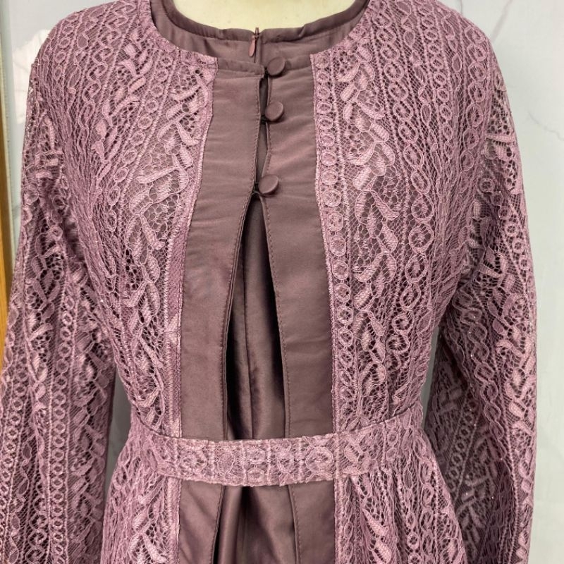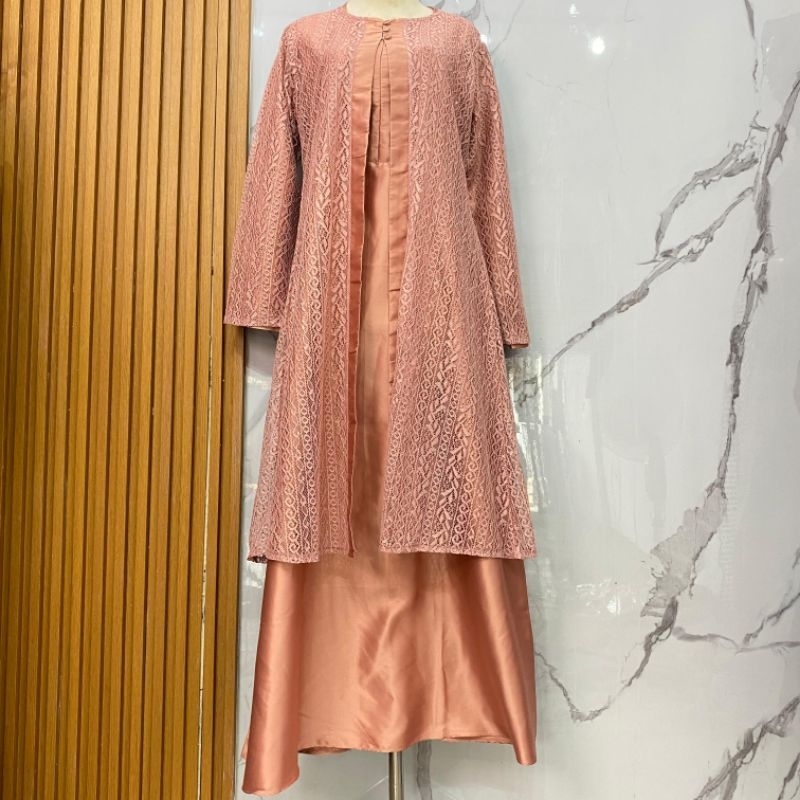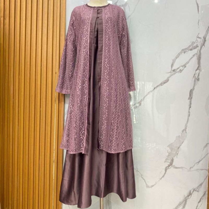 Anisyah Dress Series - OneSet Inner Outer Bahan Brukat Malika Mix Satin / Gamis Muslim Seragama