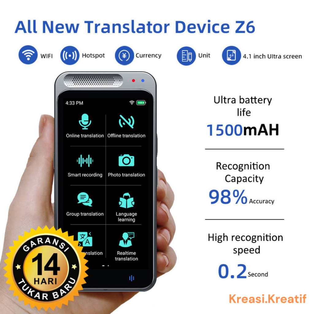 Z6 - Portable AI Smart Translator - Alat Penerjemah Online Offline Suara Foto Scan hingga 138 Bahasa