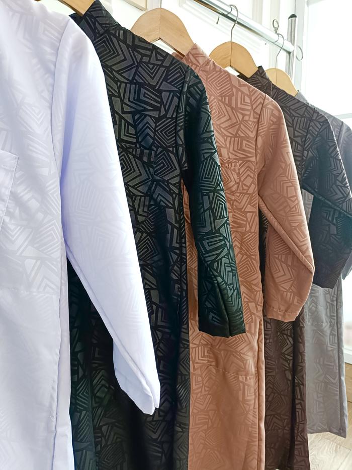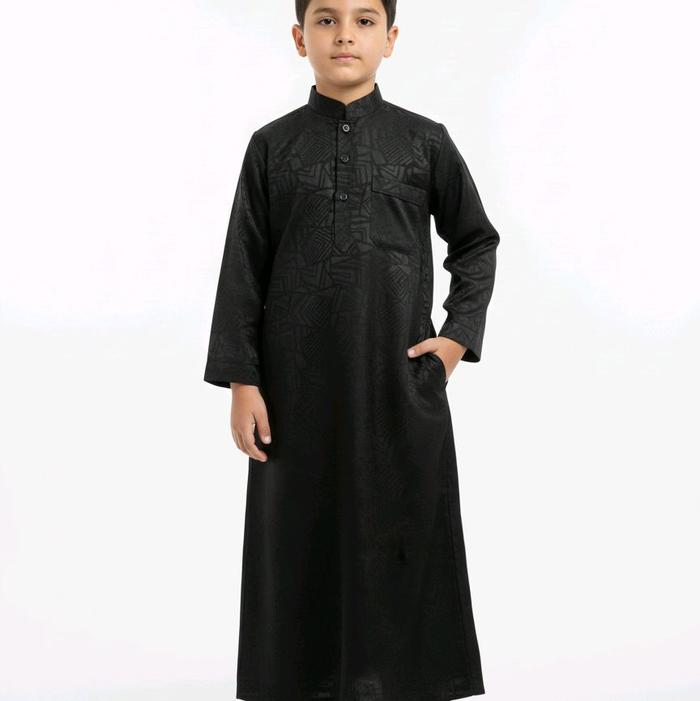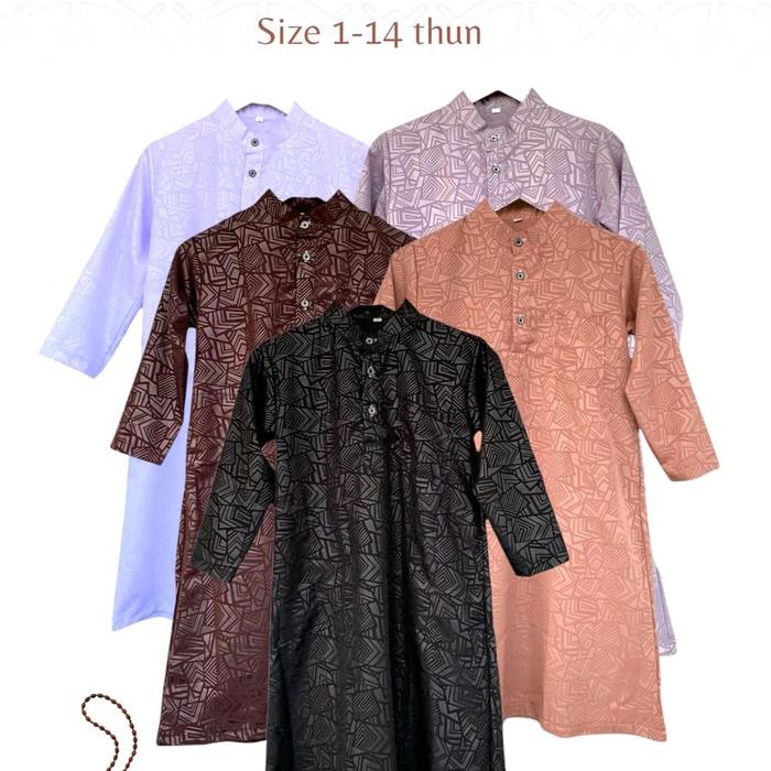 Baju Muslim Jubah Gamis Anak Laki Laki Emboss Usia 1-12 Tahun Katun Koko Panjang Mahogany - Coklat Tua, M (2-3Th)