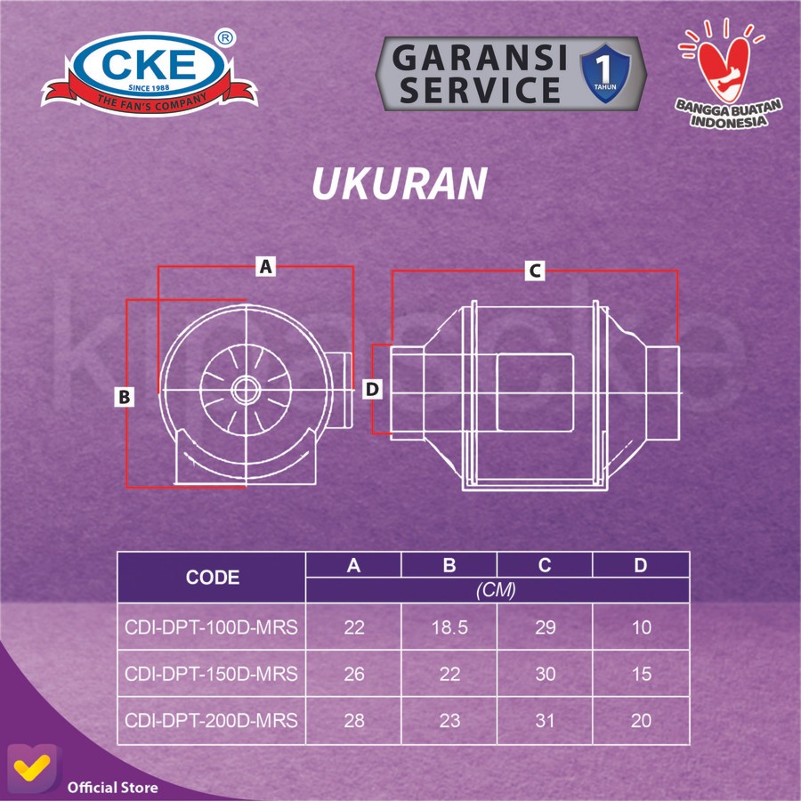 Inline Duct Booster Fan Plastik 4" CDI-DPT-100D-MRS Ventilasi 2 Speed