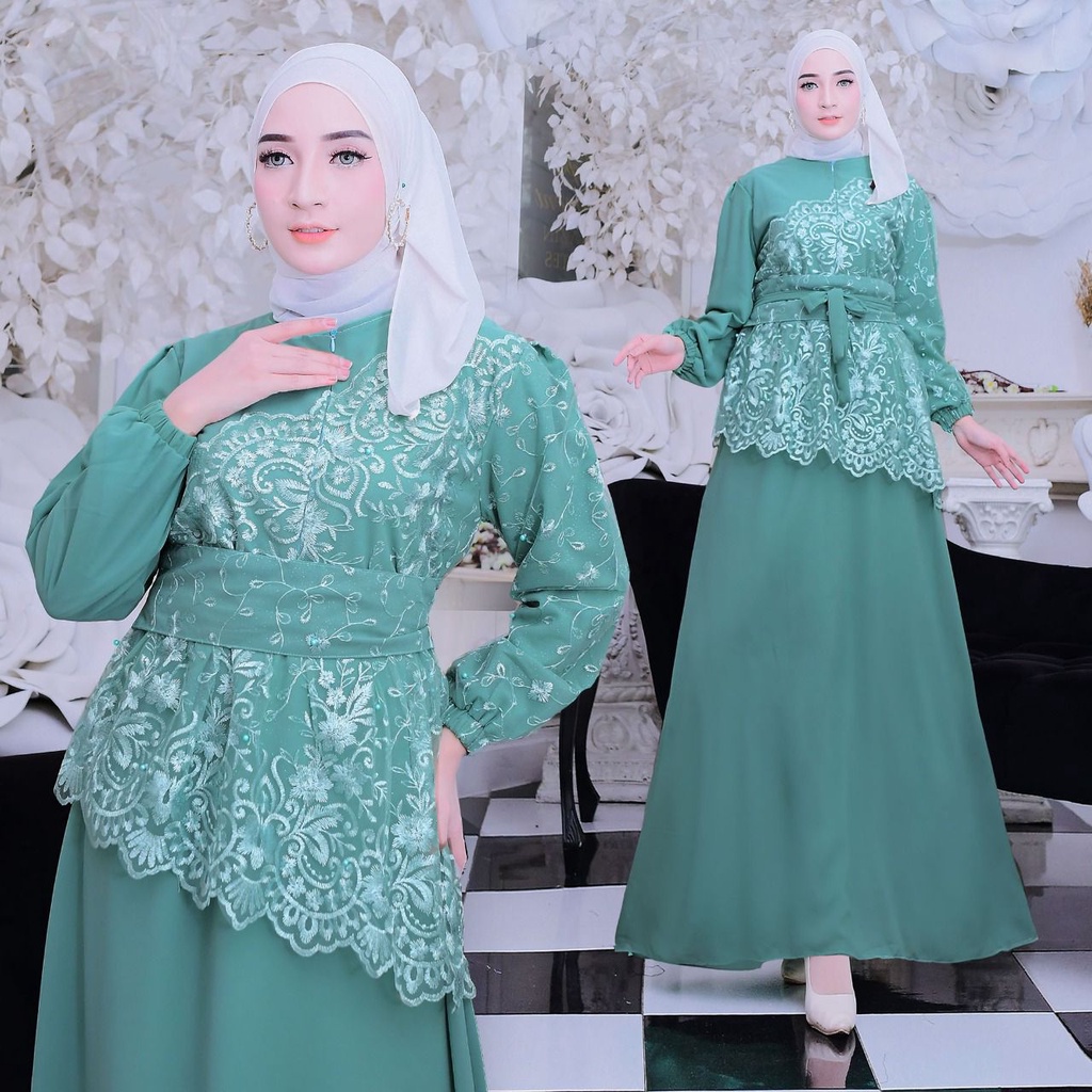 Maxi Dress Shiren / Gamis Brukat Kombinasi Bahan Ceruty / Size S-M, L , XL, XXL / Cocok Untuk Kondangan Seragam Keluarga