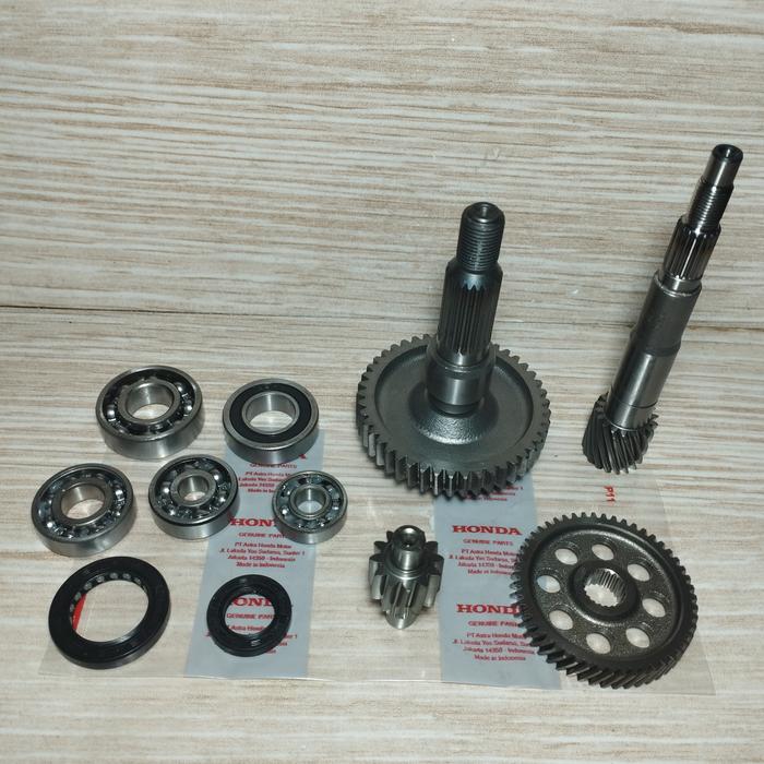 PAKET GIGI RASIO STARTER HALUS KOMPLIT ( AS PULY - GIGI GARDAN BESAR & KECIL - AS RODA BELAKANG - BERING SET 5 PCS DGN S