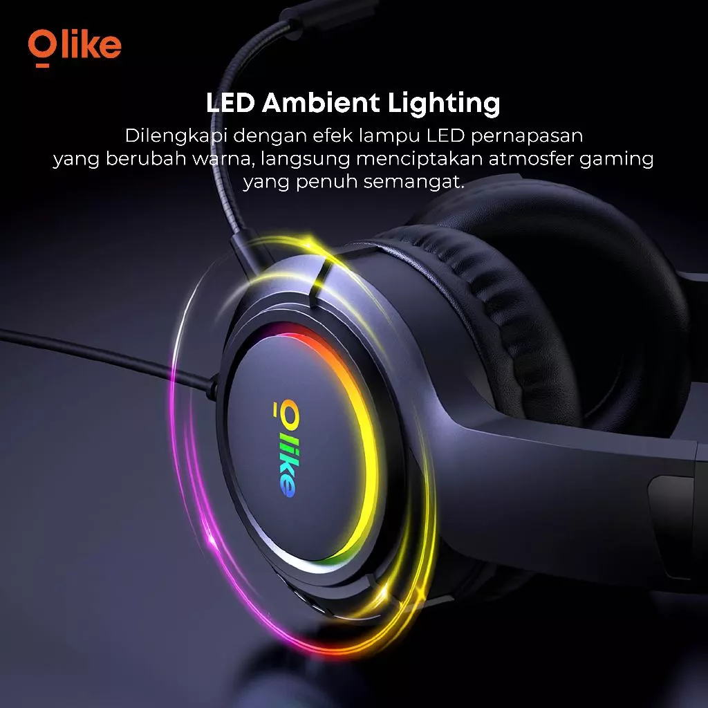 OLIKE HEADSET GAMING GH2 HEADPHONE GAMING RGB LED WIRED USB DAN JACK AUDIO 3.5MM ORIGINAL RESMI