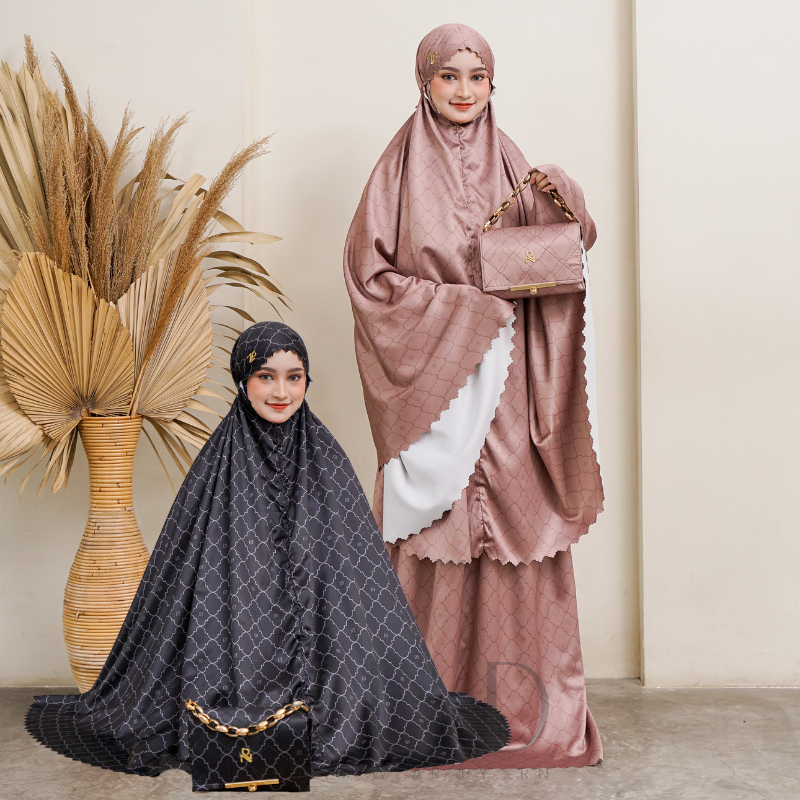 DP 0 Mukena Dewasa Monogram Silk Premium 2in1 Motif Morrocan Tali Elegan Lasercut Sarah by Errina