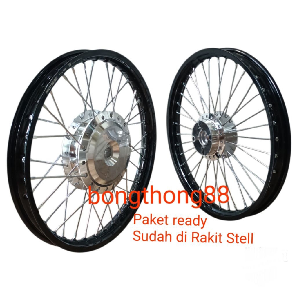 Paketan velg rossi hitam Glossi /Hitam drop ring 17 Jari jari crome Stel lurus 140 140 Beat Vario 125 Vario 150 Vario la