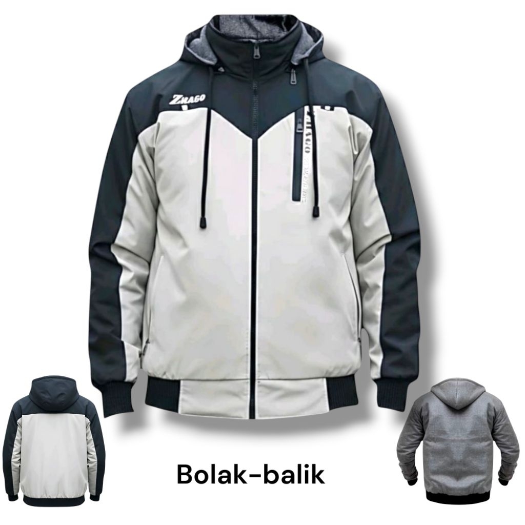 Jacket Parasut Bolak Balik Terbaru ZHAGO Premium Waterproof Hoodie Copot Pasang