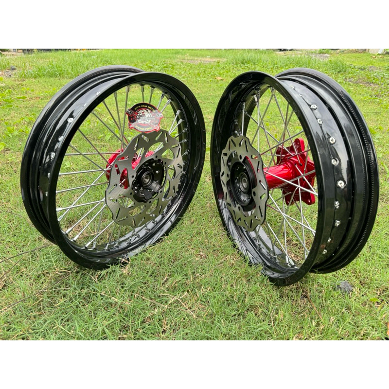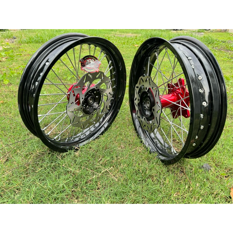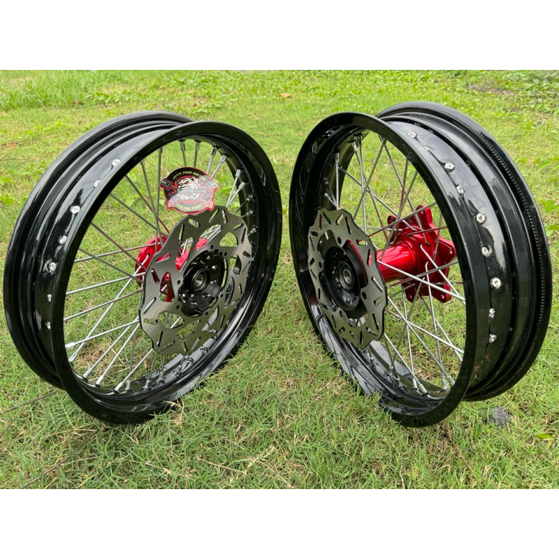 VELG SUPERMOTO CRF KLX RING 17 250-300 300-350 SET PIRINGAN DEPAN BELAKANG