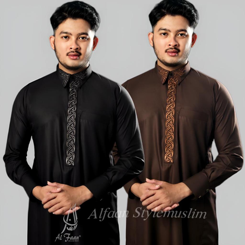 jubah Pria Gamis Slimfit DULFIQOR Jubbah Gamis pria Mewah Model Terbaru Al faan jubah jubah mewah bordir jubah pria musl