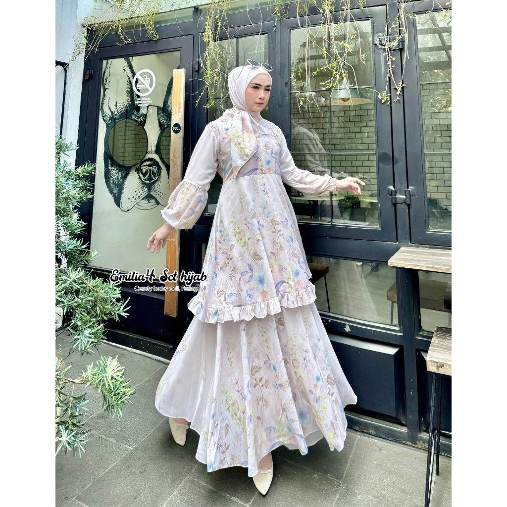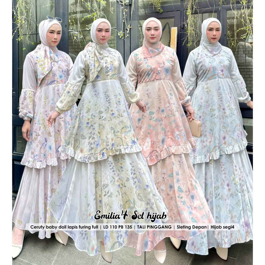 ILYA FS- EMILIA 4 Gamis Set Hijab Model Kekinian Gamis Kondangan Terbaru Best Seller