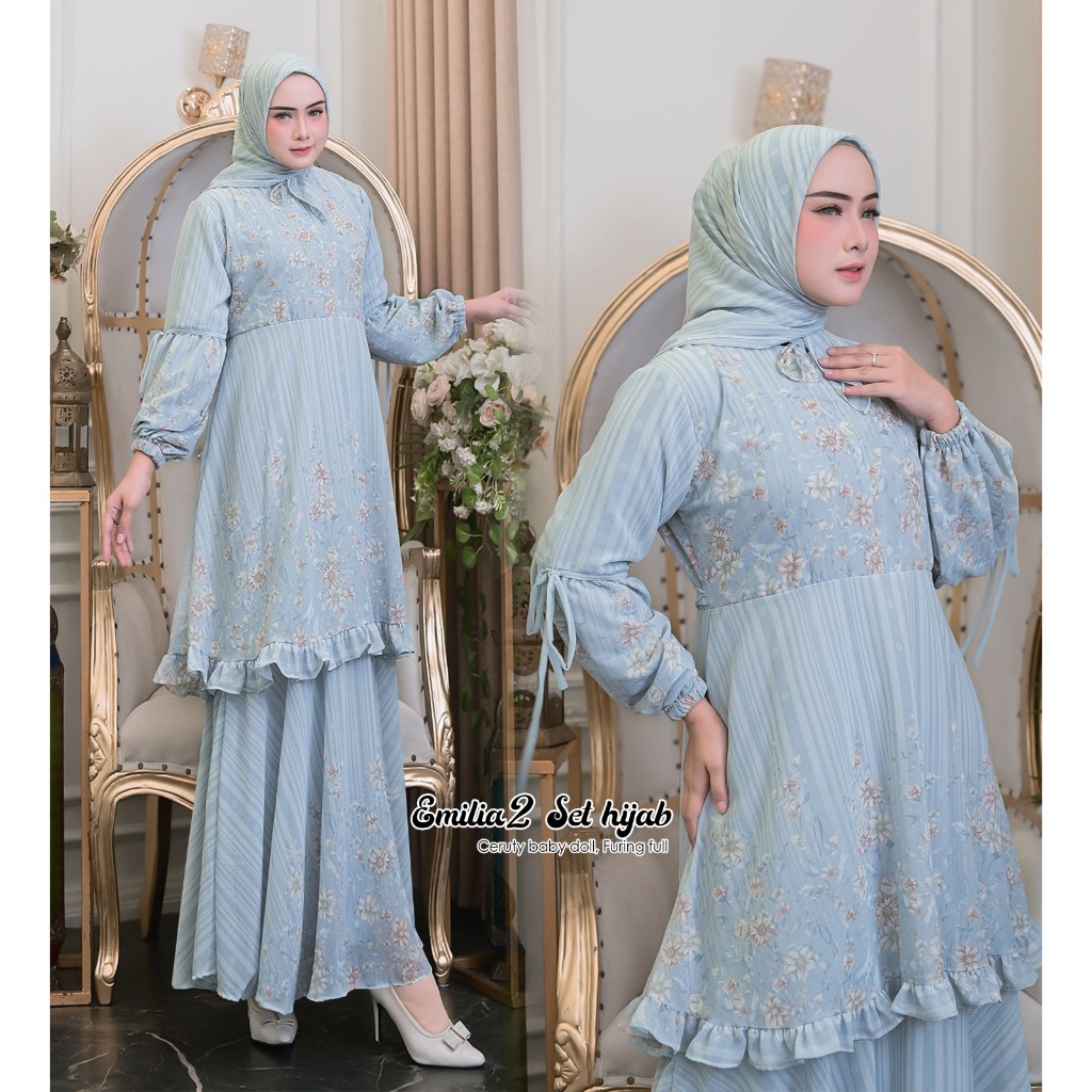 ILYA FS- EMILIA 2 Gamis Set Hijab Model Kekinian Gamis Kondangan Terbaru Best Seller
