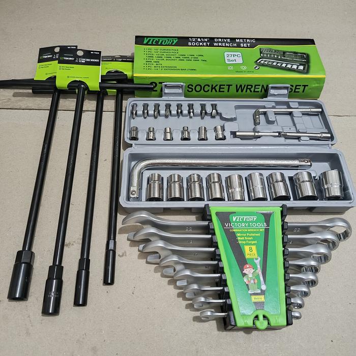 TOOL KIT TEKIRO KUNCI T 4 PCS 8-10-12-14MM + KUNCI SHOCK 27 PCS + KUNCI RING PAS 1SET + KUNCI PAKETAN BENGKEL MOTOR DAN