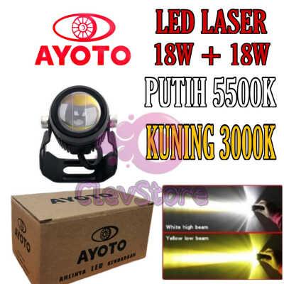 Lampu Tembak Projie Led Sorot Motor Ayoto F02 Putih Dan Kuning Watt 18+18 Universal - Ayoto F02 Laser