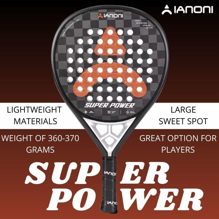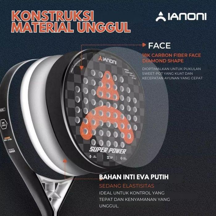 Raket Padel Ianoni Super Power Black Orange Original Carbon 18K EVA Core Ringan Permukaan Bertekstur