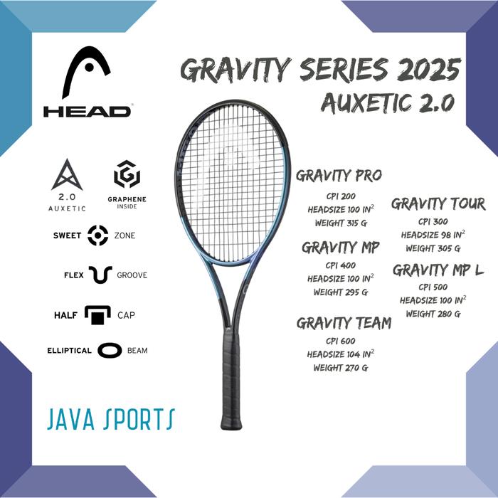 Raket Tenis Head Gravity Series 2025 Auxetic 2.0 PRO TOUR MP MPL TEAM Original Official Resmi Tennis