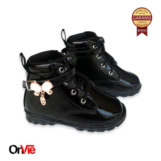 Sepatu Boots Anak Perempuan Manik Kupu-Kupu Kecil | Sepatu Boots Anak tinggi Glossy - HITAM 22
