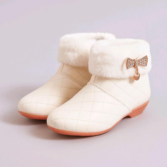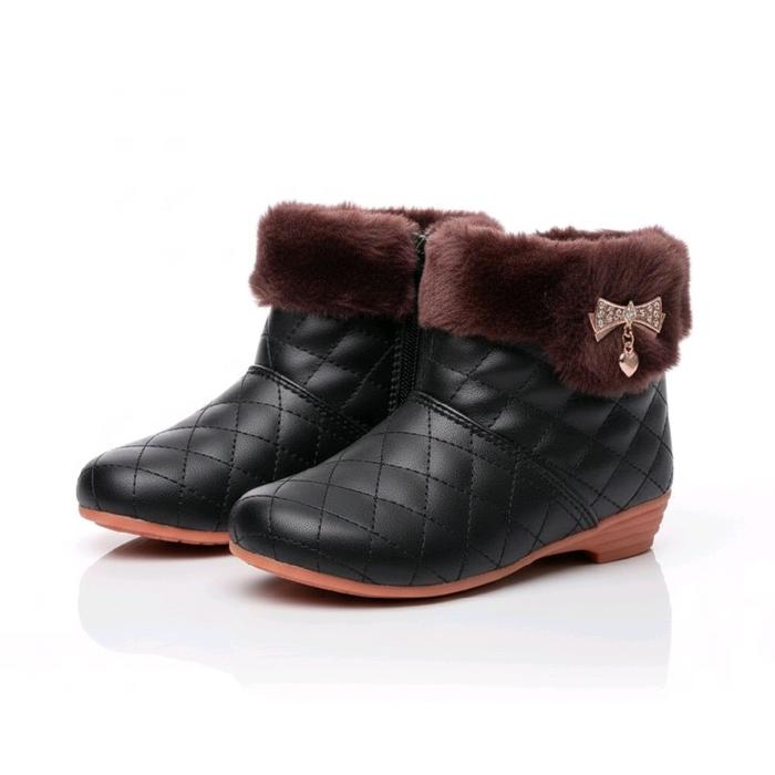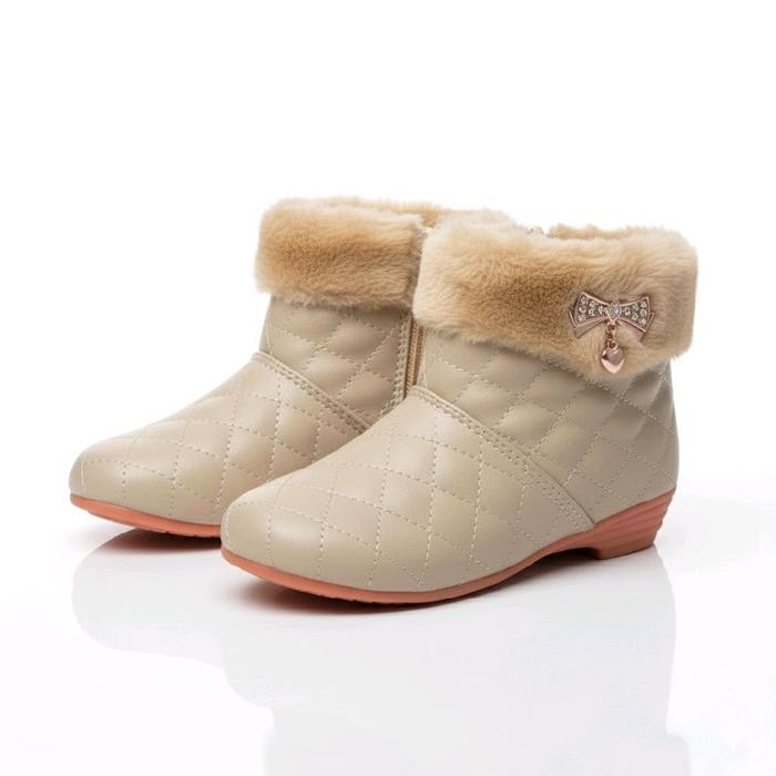 Sepatu boot anak perempuan dengan desain bulu bulu lembut dan menarik Fashion - putih 22