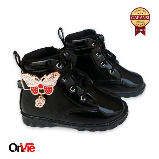 Onvie Sepatu Boots Pesta Anak Perempuan Motif Kupu-Kupu | Sepatu Boots Anak Formal Glossy - Hitam 22