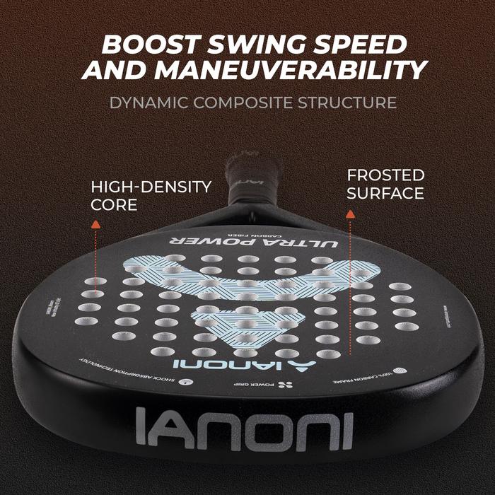 IANONI Ultra Power Black Raket Padel Carbon Fiber Surface Kasar, Kekuatan Maksimal