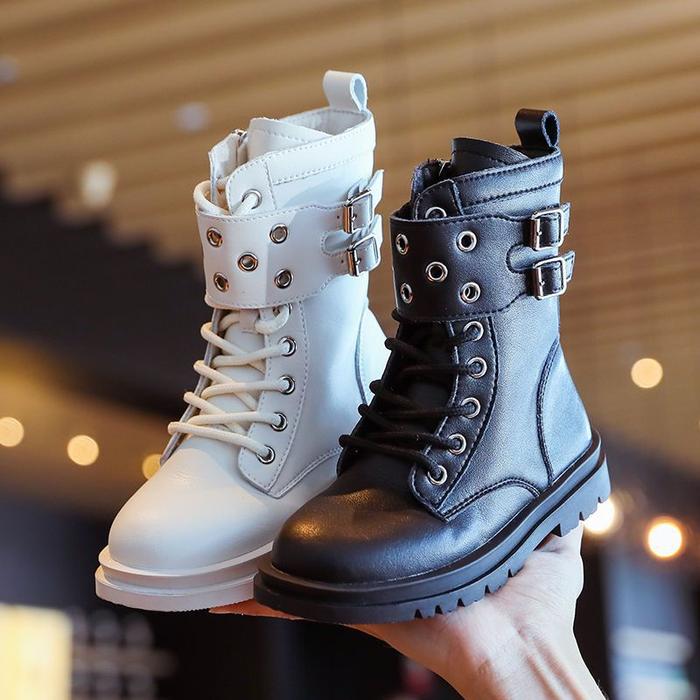 Sepatu High Boot Anak Unisex Kulit Leather Cewek Perempuan Dance Karnaval Cowok Fashion (ZH-SS156) - Black 27