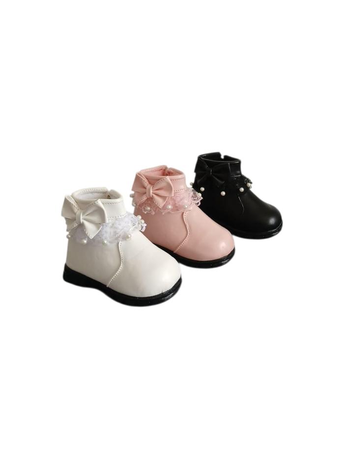 Sepatu Boots Anak Perempuan Rosela Brukat Pita Glossy - Hitam 22