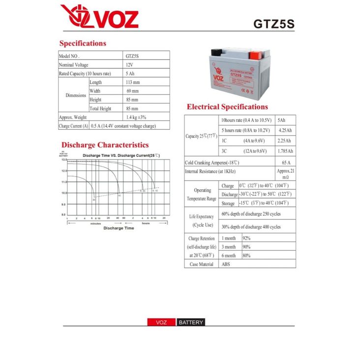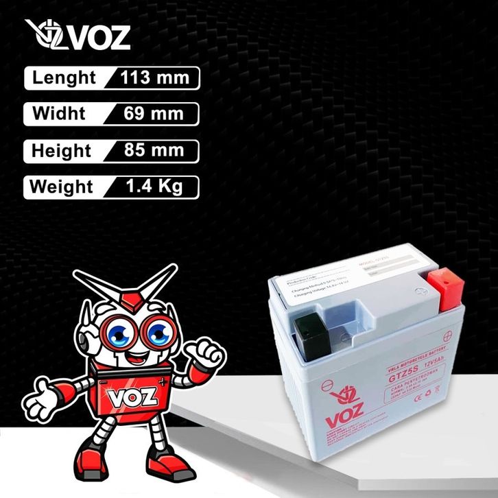 BATERAI MOTOR MATIC Voz Aki Motor GTZ5S 12V 5Ah - Baterai Aki Motor