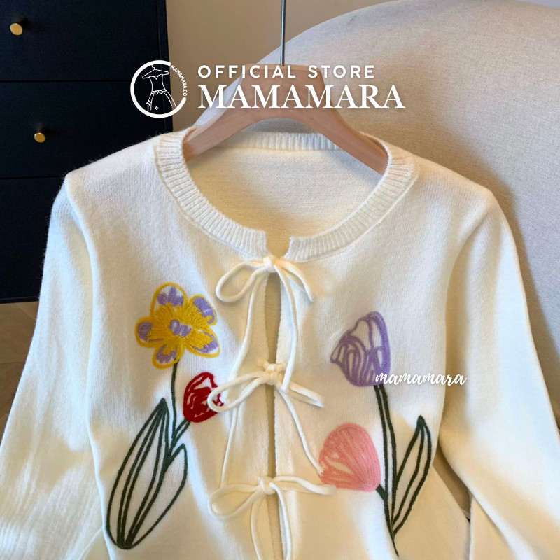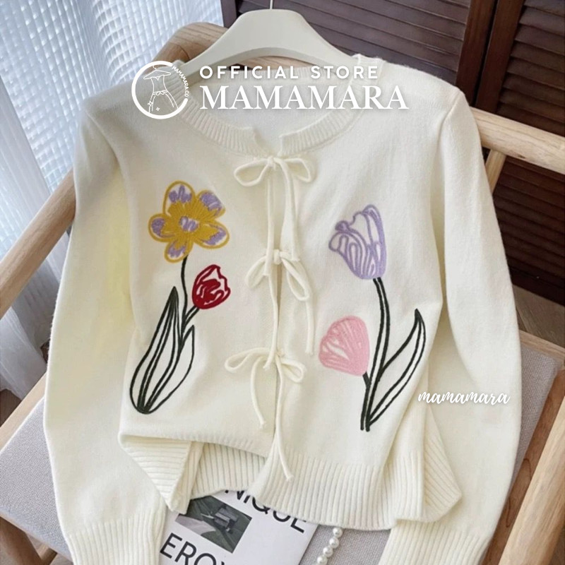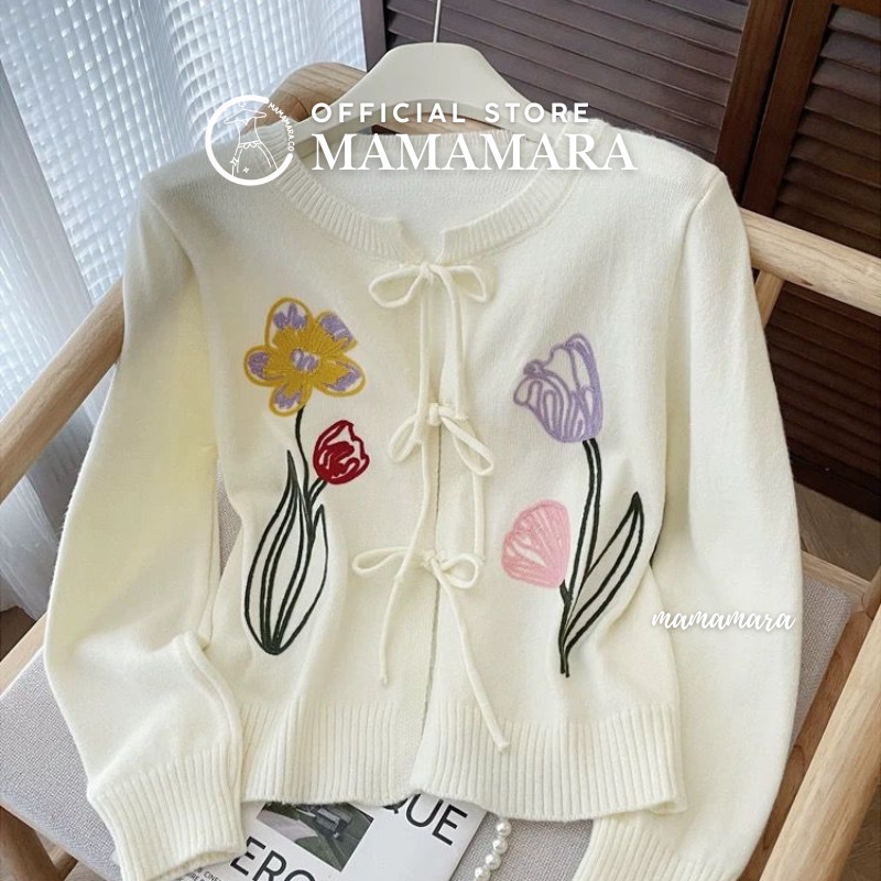 Mamamara - Cardigan Rajut Outer Bordir Bunga Tulip Tali Pita Knitwear