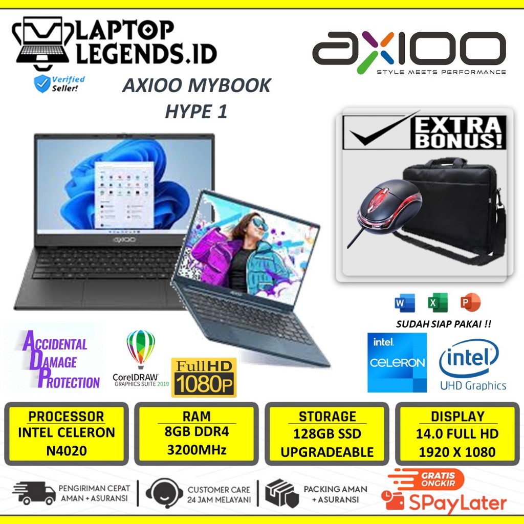 Laptop Axioo Mybook Hype 1 Intel N4020 Ram 8gb 512gb Ssd Win 11 Original Resmi
