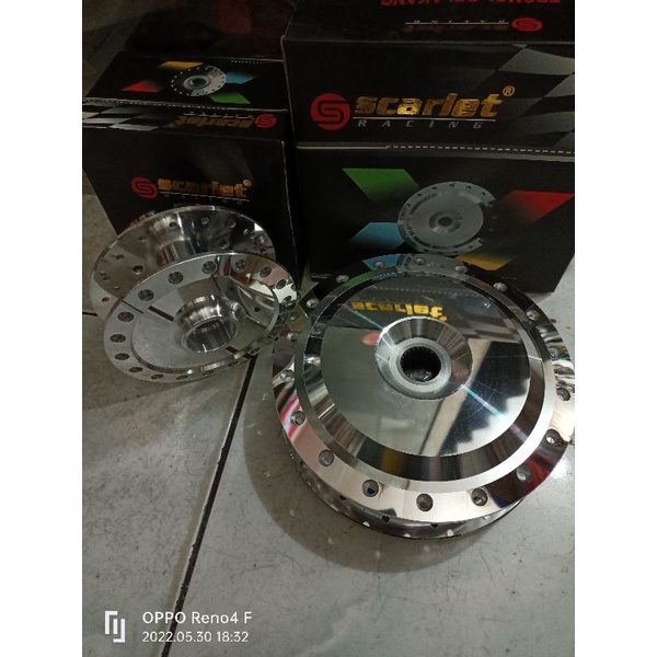 TROMOL MOTOR METIC HONDA VARIO 125OLD/TROMOL VARIO150 OLD,HUB TROMOL DEPAN BELAKANG MOTOR METIC HONDA VARIO 125 , MEREK SCARLET RNG ORIGINAL SEPASANG WARNA CROM BAHAN TEBAL VND