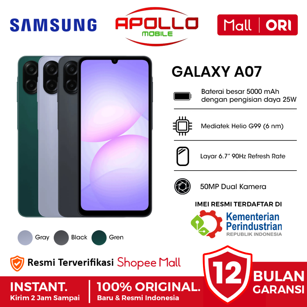 Samsung Galaxy A07 [8GB+256GB] - Garansi Resmi 1 Tahun