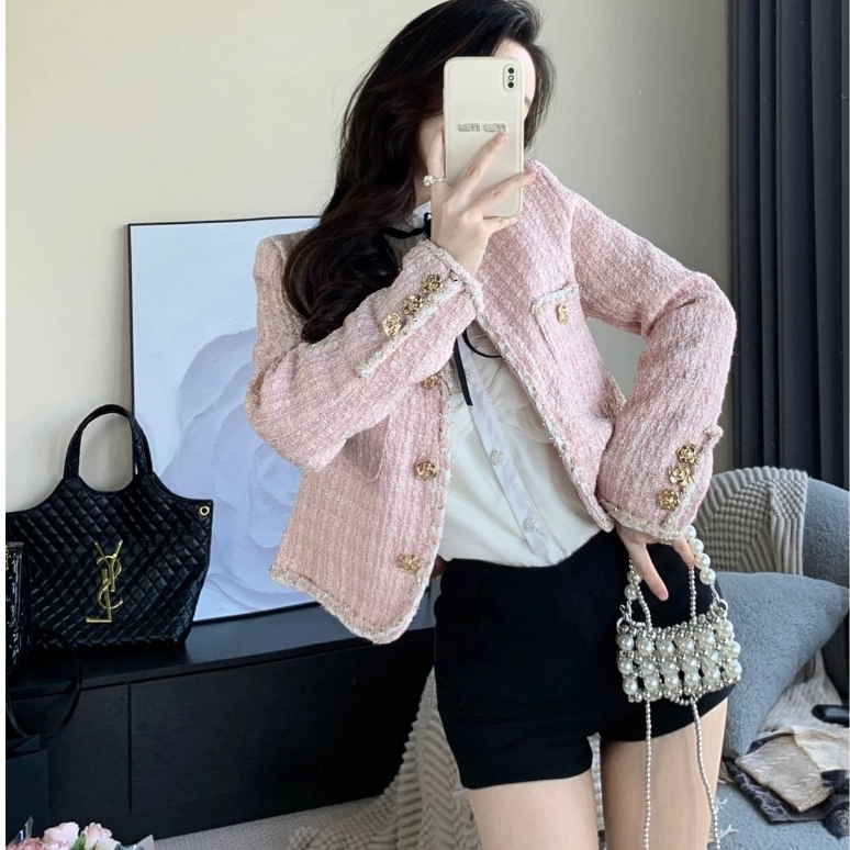 Susana Mall Blazer Crop Pink Mewah Outer Korea Style Elegan Wanita M595
