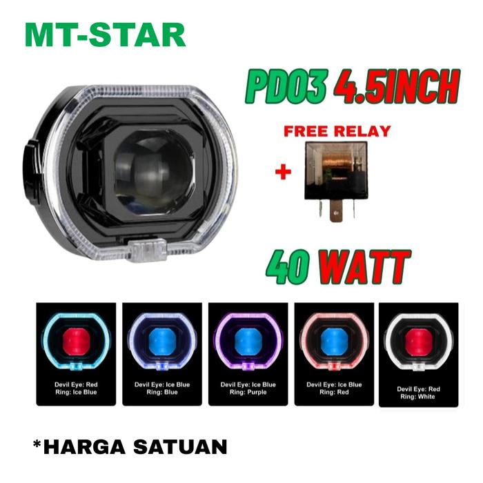 Harga Satuan Mt-Star Projie Biled Matrix X1 4.5Inch Pd03 Terbaru High Low Putih Body Black Plus Kipas Premium Lampu Pr