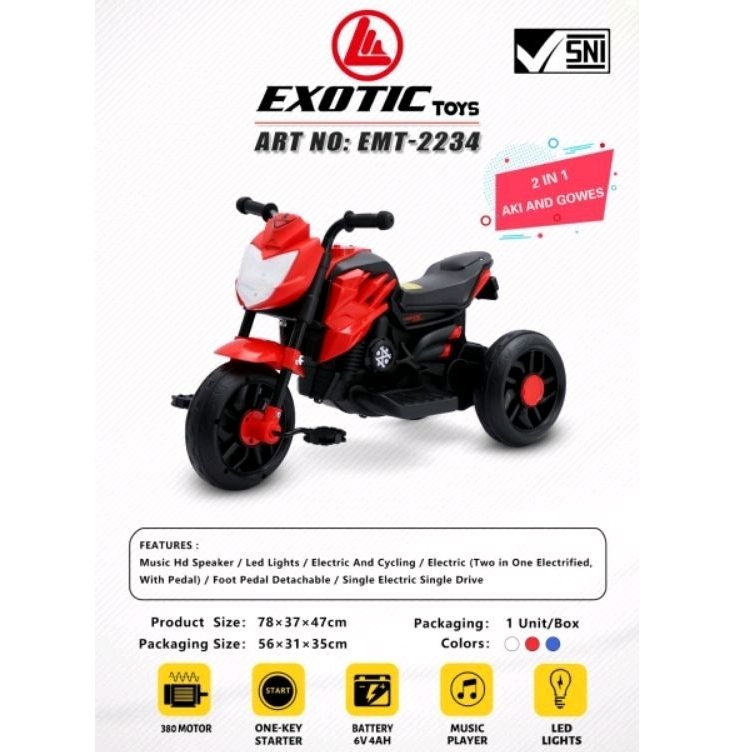 Motor aki anak dan gowes EMT 2214 2234 Aki + Gowes PMB M-888 Aki dan ET 2102 Gowes BMW Motor mainan anak Aki ban karet