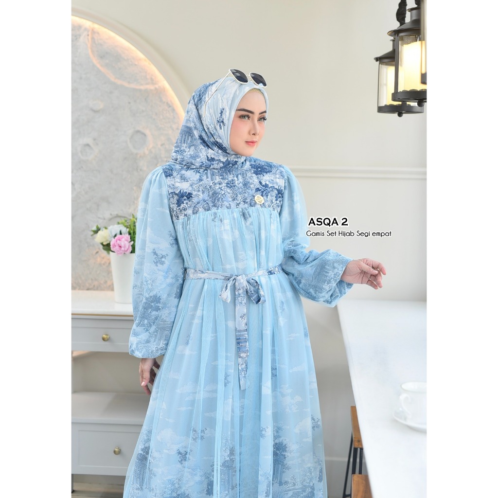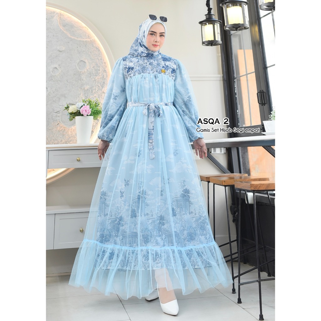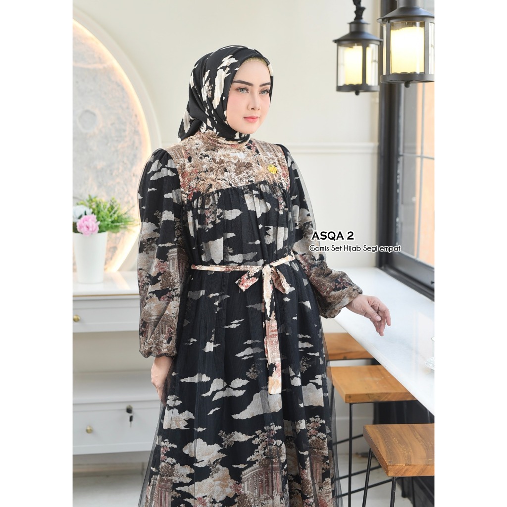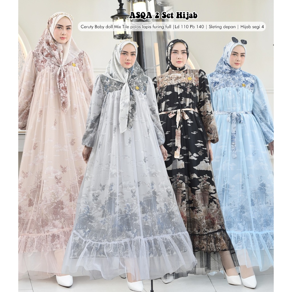 ASQA 2 Baju Gamis Muslim Ceruty Set Hijab Gamis Mewah Kondangan Terbaru Jumbo